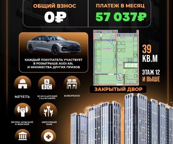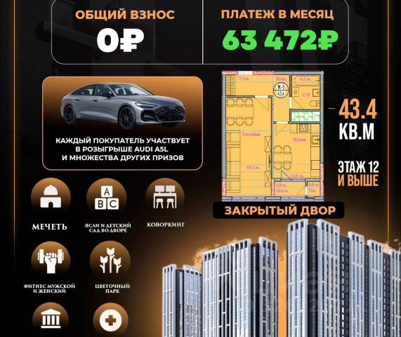 Продаётся 1-комнатная квартира в строящемся доме (Корпус 1), срок сдачи: III-кв. 2025, общей площадью 51.5 кв.м., на 4 этаже. Новый жилой дом от застройщика "Экострой" расположен по адресу: Россия, Чеченская Республика, Грозный, Хачукаева, 6б