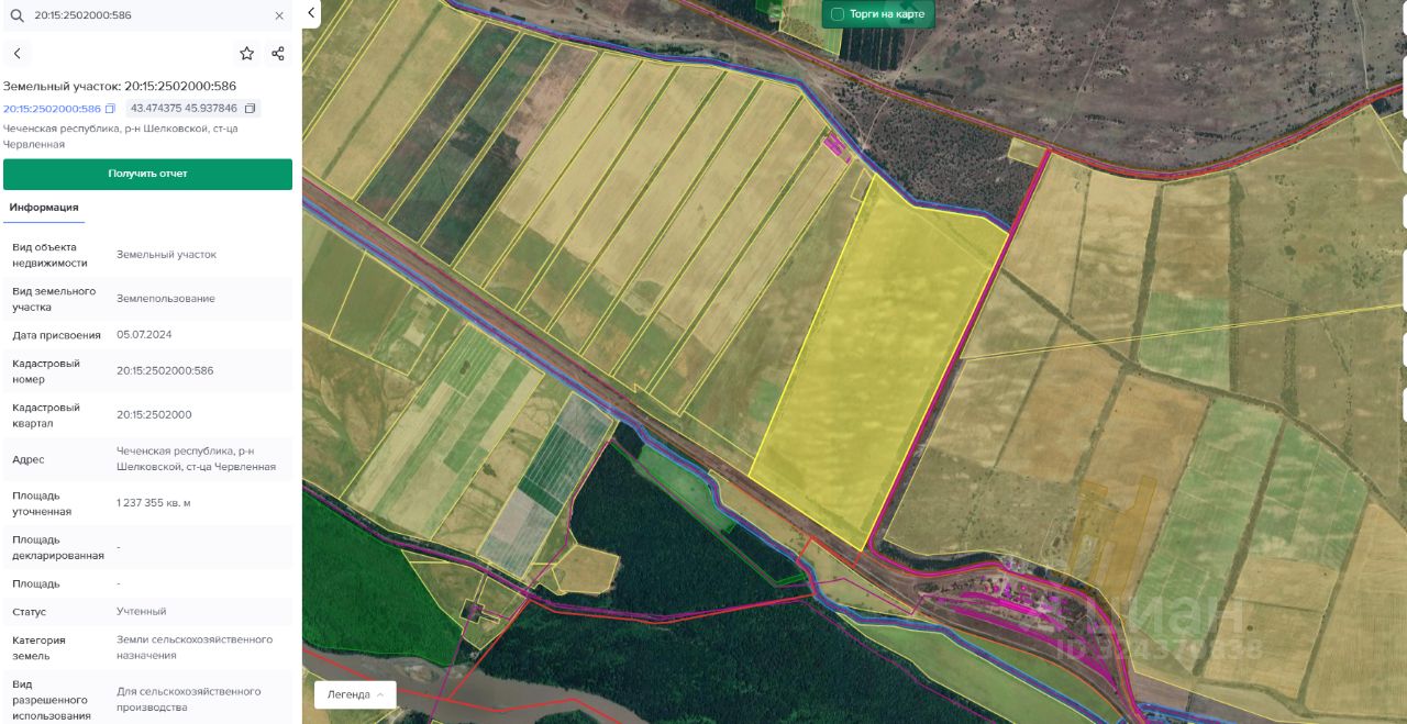 Земельный участок с кадастровым номером: 20:15:2502000:586 площадью 1237355 кв.м. расположенный по адресу: Чеченская Республика, Шелковской муниципальный район, ст-ца Червленная