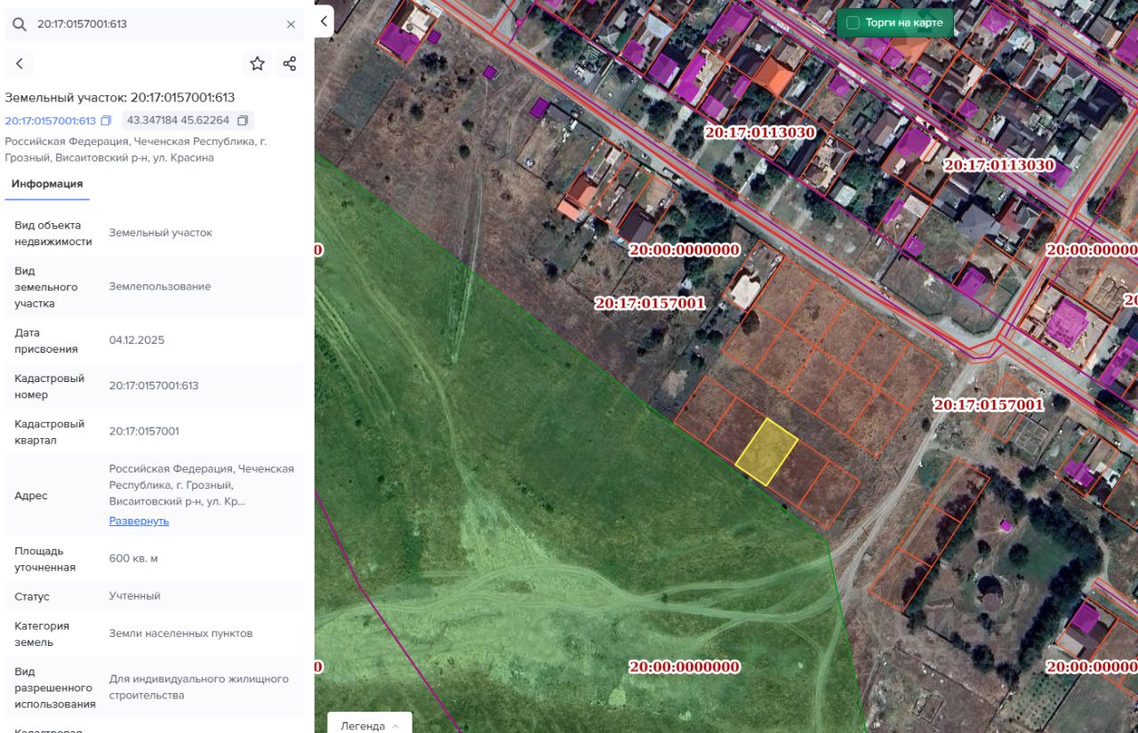Чеченская Республика, г. Грозный, Висаитовский р-н, ул. Красина 20:17:0157001:613