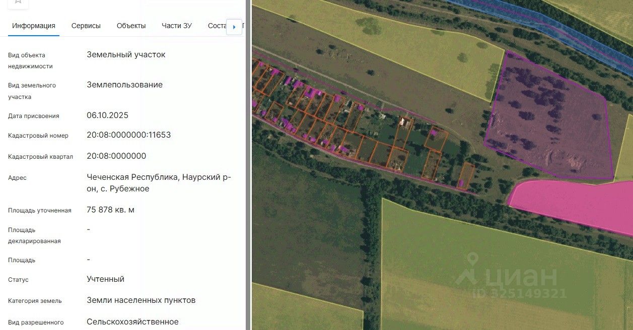 Кадастровый номер 20:08:0000000:11653, площадь 75878 кв.м., категория земель "Земли населенных пунктов", вид разрешенного использования сельскохозяйственного использование