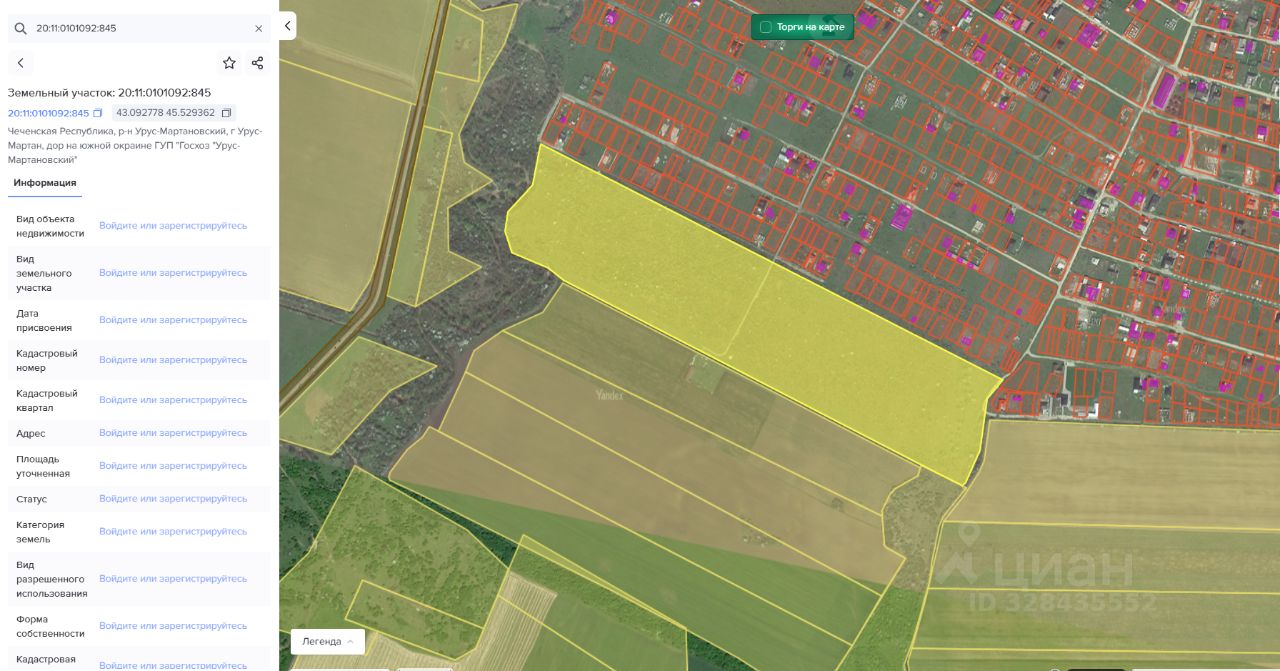 Земельный участок с кадастровым номером: 20:11:0101092:845 площадью 220000 кв.м. расположенный по адресу: Чеченская Республика, Урус-Мартановский муниципальный район, г Урус-Мартан