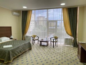 Однокомнатный комфортабельный номер, оснащенный современной удобной мебелью и с видом на город. Площадь номера 40 кв.м. В номере: телефон - телевизор ЖК (российские и иностранные спутниковые каналы) - холодильник - бесплатный Wi-Fi доступ в Интернет - система центрального кондиционирования - одна двуспальная или две односпальные кровати (ортопедический матрас) просторный гардероб телефон - система центрального кондиционирования. В ванной комнате: душ - расширенный комплект полотенец - расширенный набор косметических принадлежностей - фен. В стоимость номера включено: завтрак в формате "Континентальный завтрак", посещение фитнес-центра.