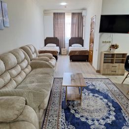 Сдаются апартаменты для гостей нашего города. В номерах есть все, для комфортного проживания. Рядом есть большой супермаркет "чаран хьи "маленький рынок, рядом есть кафе "сахара". Мимо гостиницы проходит маршрут под номером 55. Будем рады гостям! Документы с чеками выдаём.