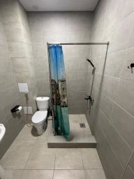 Двухместная комната со всеми условиями для комфортного проживания: кондиционер, двуспальная кровать с возможностью разделения, телевизор, прикроватные вместительные тумбочки, совмещенный санузел.