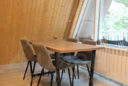 Гостям представлены 2-х, 4-х и 6-ти местные домики в стиле "A-FRAME". Домики оборудованы необходимой мебелью, посудой и техникой: телевизор, холодильник, чайник, электроплита.