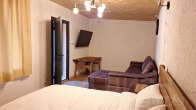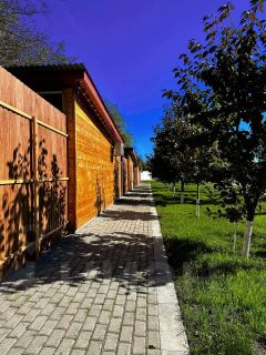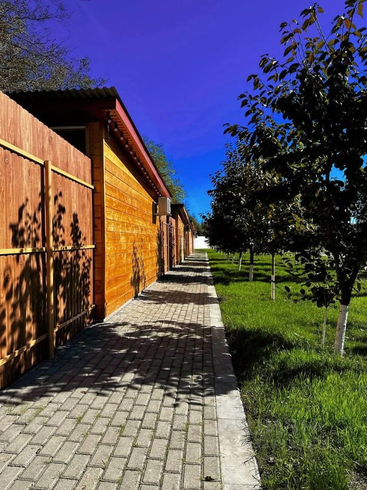 На территории 5 четырехместных коттеджа: двуспальная кровать, раскладной диван, собственная кухня, телевизор и санузел с душем.