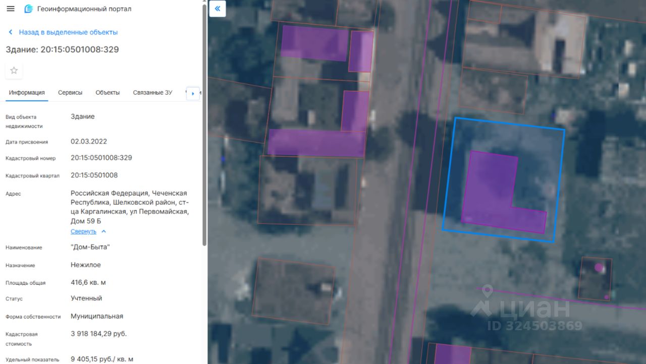 Здание с кадастровым номером 20:15:0501008:329 площадь 416.6