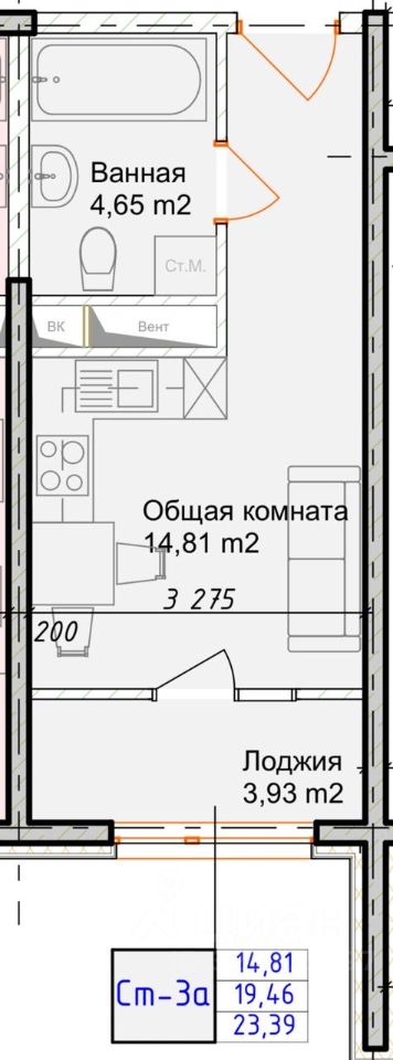 Студия, 23,39 м²