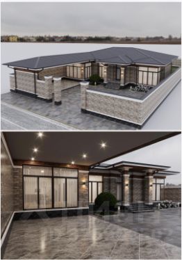 размерами 17,5 на 13,5 м, + навес 8 на 5 м, проект дома имеется.