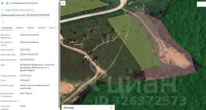 Земельный участок с кадастровым номером 20:01:0201003:725 площадь 431 по адресу Российская Федерация, Чеченская Республика, Ачхой-Мартановский район, с. Давыденко, ул. Заречная